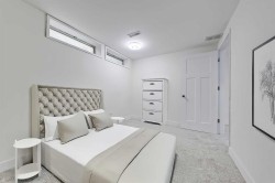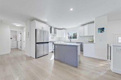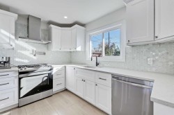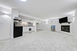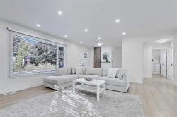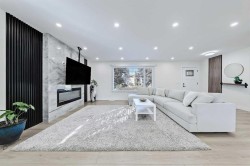 This beautifully renovated bungalow on a sunny corner lot in Varsity is the kind of home that instantly stands out! With timeless curb appeal, central A/C, a bright open layout, and a 2-bedroom basement illegal suite with an additional 3 bedrooms on the main floor, it offers incredible flexibility for families or investors alike. Inside, the living room features an elegant, tiled fireplace wall and a large picture window, flowing effortlessly into a stylish dining nook and a show-stopping kitchen with quartz countertops, a central island, stainless steel appliances, a gas range with pot filler, and a glass tiled backsplash. Three spacious bedrooms and a spa-inspired 4-piece bath complete the main level. Downstairs, the well-designed basement illegal suite includes a kitchen, a cozy rec room with a gas fireplace, two bedrooms, and a 4-piece bath—perfect for multi-generational living or rental income. Enjoy a large, fenced yard, rear deck, and single detached garage with additional covered parking for two vehicles, which could be converted into a full garage if desired. Thoughtful updates over the years include new upstairs appliances (2023) and central A/C (2024) on the main floor, new furnace (2020), new water tank (2020), new 100-amp panel (2021), and new roof (2017 house / 2021 garage). Located close to Market Mall, U of C, parks, and top-rated schools in the highly desirable community of Varsity.