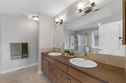 Welcome to this Auburn Bay gem, perfectly tucked away on a quiet street, just steps from the lake. With 4 bedrooms, 3.5 bathrooms, and over 3247 sq feet of living space, this home is all about comfort, function, and everyday enjoyment. One of the highlights of this property is its impressive energy efficiency. A 4kWh solar panel system helps keep utility costs low, averaging just $80 per month in the spring and summer and rarely more than $400 even in the coldest winter days. Combined with excellent insulation, the home stays comfortable year-round without the price tag. Everyday luxuries are also built in, including a water softener and a tankless hot water heater, making daily routines that much more enjoyable. The primary suite is the perfect escape, offering 212 square feet of space, dual walk-in closets, and a spa-inspired ensuite with a separate soaker tub and shower. Each of the secondary bedrooms are large, providing bright and private spaces for family or guests. A main-floor office faces southwest, allowing you to enjoy Calgary’s stunning sunsets while working or relaxing. At the heart of the home is a kitchen, complete with a granite island, breakfast bar, and walk-in pantry. The open layout flows seamlessly into the dining and living areas and out onto the deck, creating the perfect environment for family dinners, casual evenings, or summer barbecues. The garage goes beyond simple parking, offering an organized and functional space with room for tools, bikes, sports equipment, and more, all without ever feeling cluttered. The fully finished basement adds even more versatility, complete with its own bedroom, living room, kitchen, office, and dedicated storage. Whether you’re hosting guests, accommodating extended family, or exploring rental potential, the lower level offers endless options. Outside, a backyard shed provides extra storage for all the items you’d rather keep tucked away, while the outdoor living space is ideal for gatherings or quiet evenings. Living in Auburn Bay means access to one of Calgary’s most sought-after lake communities. Residents enjoy year-round recreation, from swimming, kayaking, and paddleboarding in the summer to skating on zambonied ice rinks and cozying up by the fire pits in the winter. Add in beach volleyball courts, playgrounds, walking paths, and a welcoming community atmosphere, and it’s easy to see why Auburn Bay is such a special place to call home! With an unbeatable location near the lake, schools, and all the amenities Auburn Bay is known for, this home checks all the right boxes!