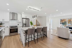This beautiful 4-level split in the sought after community of Oakridge features over 2100 sq ft of developed space and has just under gone the most complete extensive and attractive renovation. Walk into the front door to a wide-open floor plan, fresh and modern, with a large living room, dining room and an all-new kitchen. New LVP floors, hardwood stairs, paint, light fixtures, flat ceilings, large stone Island with loads of counter and cabinet space, all new cabinets, appliances ... it’s a space to entertain and live in. Up stairs the Master bedroom easily accommodates a King bed and has its own 2 pce ensuite that has a separate toilet closet. The other 2 bedrooms are a good size share a beautiful 4 pce ensuite which comes complete with a smart/LED and anti fog mirror. The 3 rd level is light and bright with lots of windows and features an electric fireplace, large family room, storage closet, a 4 th bedroom/ office with a large walk-in closet. This room is large enough to be both a bedroom and office together. The 4 th level features a media room with sound proofing on the walls, a games area, 3 pce bathroom also with a smart anti fog mirror, laundry room and the utility room. All newer windows, furnace and hot water tank. Out back the single garage/storage shed will accommodate a small car and all the toys one desires and the large yard features raised flowerbeds. A portion of the driveway and the front steps have recently been re- poured with fresh concrete. Now let’s talk about the location… walk or bike to Glenmore park, pathways, parks, shopping, restaurants, banks, schools or the Southland Rec. centre. If you are looking to just move in this gorgeous property is the one for you
