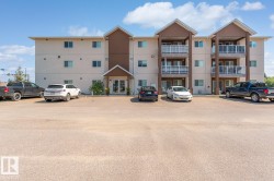 Perfect for investors or first-time homebuyers! This bright, modern condo features 2 bedrooms, 1 bathroom, and a spacious open-concept living area. It also includes two outdoor parking spots with plug Ins. Laminate flooring throughout, the kitchen offers plenty of storage, ample counter space, and a large island for cooking or entertaining. Enjoy the convenience of in-suite laundry with a washer and dryer, and extra storage space. This unit is equipped with air conditioning and a nice balcony to enjoy. Situated in Cold Lake North, this property is just a short walk to the marina/lake and local shops, and restaurants. The building is secured with a buzz-in system and features a conference room & storage room. Condo fees cover essential services, including heating, water, landscaping, snow removal, exterior maintenance, reserve fund, and professional management..maintenance free living--move in ready!