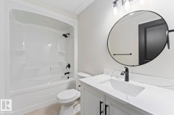 Hiscock Homes has another beauty in the works! TRIPLE HEATED ATTACHED GARAGE & fully developed 1560 sqt+ home in the sought after Lakewood subdivision. 5 bedrooms, 3 bathrooms with the primary suite boasting in-floor heat, his and hers sink and a tiled shower. Included in the list price is a fully developed heated basement with 2 more bedrooms, bright family room and 4 piece bathroom. Open concept living/dining area with vaulted ceilings, a kitchen with custom cabinets, stone countertops and stainless appliances included. You would have the option to pick your own colours and add your own personalized touches. The builder will also be laying top soil, sod front + back along with a pressure treated wood fence! Vinyl exterior with front rock face decor. Nothing left to do but move in and enjoy the smell of a NEW built home. Photos are an example only. UNDER CONSTRUCTION. Estimated completion October 2025