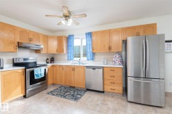 Step inside this inviting 4-bedroom, 2-bath home that blends space, light, and functionality. The front living room with its large bay window creates a bright and cozy spot to relax, while the open kitchen and dining area down the hall make gatherings easy with direct access to the back deck. With no carpet, the home offers hardwood and laminate floors throughout for easy care and timeless style. The fully finished walkout basement is a true highlight—perfect for a family room, home office, or play area—complete with a spacious laundry room and excellent storage. Comfort is ensured year-round with central air conditioning, and recent updates include fresh paint and new shingles for a move-in ready feel. Outside, the private yard is surrounded by mature trees, offering shade and privacy, with convenient back alley access. This home combines comfort, charm, and practicality, making it a fantastic option in Cold Lake.