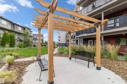 Immaculate main floor unit with private south-facing balcony overlooking quiet green area. Peninsula kitchen features quartz countertops with extended eating bar, ceramic backsplash, stainless steel appliances and granite sink. Large living room with oversized windows and garden door to sunny patio. Spacious bedroom with large walk-in closet. Luxury vinyl plank flooring and upgraded fixtures. In-suite laundry. Underground heated parking and private storage unit. Fantastic amenities including social rooftop patio, community vegetable garden and fenced dog park. Close to all services including public transportation, shopping, dining and entertainment. Private and secure unit with safety locks on windows and doors as well as 24 hour monitored security. Don't miss out!