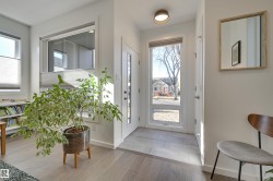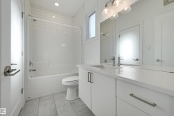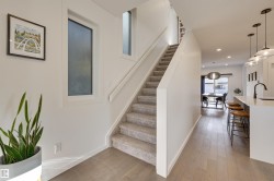 Welcome to this stunning two-storey home in the heart of Grovenor, perfectly positioned on a picturesque, tree-lined street. Step inside to an inviting open-concept main floor, where a bright living room with a cozy fireplace is framed by large windows that fill the space with natural light. The chef-inspired kitchen is sure to impress, featuring quartz countertops, a stylish tile backsplash, gas cooktop, built-in oven, and a striking waterfall island with seating—ideal for cooking and gathering. A spacious dining room and a well-designed mudroom offer seamless access to the large deck, fully fenced backyard, & double detached garage. Upstairs, the show-stopping primary suite offers vaulted ceilings, a walk-in closet, & a luxurious spa-like ensuite complete with dual sinks and an oversized walk-in shower. Two additional bedrooms, a 4 pc bath, & a laundry room complete the upper level. The fully finished basement provides even more living space, featuring a generous family room, 4th Bedroom, & 4pc bath.