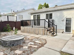 Welcome to this Charming 1,085 SqFt. Bungalow in the Community of Bergman. Situated on a Quiet Street this Home Would be Perfect for a Young Family or First Time Home Buyer. Featuring 5 Beds-3 on the Main & 2 Down(one bsmt bed needs a closet or wardrobe cabinet), 2.5 Baths, & an Oversized Detached Garage with 10-Foot Doors-Making it Ideal for a Workshop, Extra Storage, Boat/RV Parking. The Large Exterior Garage Parking Pad also Makes for Ample Additional Outdoor Parking/Storage. The property is Fully Landscaped & Fenced, with a Beautiful Patio to Sit & Relax or Entertain on. New Shingles 2025. The Main Living Area is Bright & Spacious. Easily Access your Outdoor Patio Conveniently from your Kitchen Dining Area. Enjoy Year-Round Comfort with Central A/C. Conveniently Located Near Schools, Parks, Shopping, Public Transportation, Wayne Gretzky Drive, Yellowhead Trail, Anthony Henday Drive & More, this Home is a Must See & is Ready to Welcome its Next Family! *Some Photos Have Been Virtually Staged.