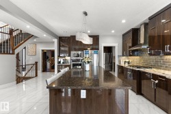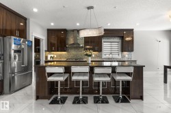 This stunning estate in the sought-after Allard community boasts a custom design with a triple-attached garage, 7 bedrooms (4 on the second floor), and 6 full baths. The main floor features a chef’s second kitchen, a den/office, a 3-piece bath, and a separate entrance for added privacy. The grand foyer leads to a formal dining area and a cozy living room with built-in cabinetry and a gas fireplace. The chef-inspired kitchen includes top-tier appliances, granite countertops, a butler’s pantry, and deck access. Upstairs, enjoy a spacious family room and a luxurious primary bedroom with 3 additional en-suite bedrooms. The finished basement offers a wet bar, recreation room, theater room, two bedrooms, and a 3-piece bath. Built-in speakers complete the home. The backyard oasis provides beautiful landscaping and a tranquil retreat