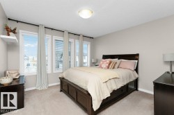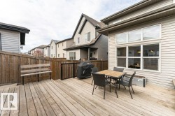 Welcome to this gorgeous 3 bdrm 2.5 bath central air conditioned two-storey home with double detached garage. It features a striking front façade with floor-to-ceiling windows. Interior glass panels highlight the open space from basement to main floor. The home's design is open and airy with the living room centering around a gas fireplace, adding warmth and ambiance to the space. The gourmet kitchen is complete with contemporary finishes, high-end stainless steel appliances, and a large eat up island with the dining area dressed with a bank of windows. Upstairs, you’ll find the 3 well-proportioned bedrooms, with the primary featuring a walk-in closet and 4 pce ensuite. On the landing between the main floor and lower level is home to the half bath.The lower level offers a great rec area and utility room, housing the front load laundry duo. A massive deck expands from the house to the garage, offering a perfect space for outdoor dining, lounging, and entertainment, accompanied by smart landscaping choices.