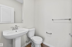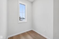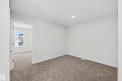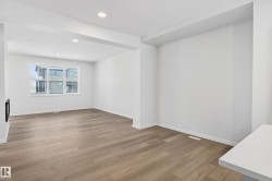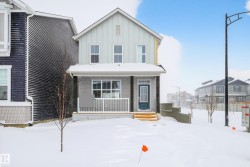 Gorgeous, brand new 2 storey on CORNER LOT & 20x20 parking pad, constructed by Homes by Avi. Welcome to Marquis West, a picturesque & serene community in Northeast Edmonton. This home is AMAZING! Charming full width front porch, SEPARATE SIDE ENTRANCE, 3 bedrooms, 2.5 baths, pocket office, upper-level loft style family room & laundry closet. Open concept main level floor plan w/stunning design highlights welcoming foyer, spacious living/dining area, deluxe kitchen w/center island, appliance allowance, chimney hood fan & built-in microwave. Private owner’s suite w/luxurious 4-pc ensuite showcases upgraded shower & WIC. 2 spacious junior rooms & 4pc bath. Numerous upgrades throughout including, quartz countertops, abundance of cabinetry, upgraded lighting/fixtures, neutral palette, luxury vinyl plank flooring, plush carpet upper level, 9' ceiling height in basement, electric F/P, HRV system & programable thermostat. MUST SEE HOME!!