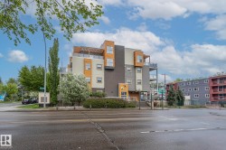 MINT condition, PET FRIENDLY, 1 Bed 1 Bath SOUTH FACING 2nd floor unit with a Titled UNDERGROUND stall + storage cage, and a spacious patio with a Gas Line! High end finishes throughout, with luxury vinyl floors, nice window coverings, quartz counter tops, soaker tub, large open concept kitchen, stainless appliances, and INSUITE LAUNDRY! Welcome to Millcreek Park! Built in 2011, this beautifully designed building has been thoroughly maintained, with a unique roof top patio common area space, and a car wash bay! Only a few seconds walk to Millcreek ravine, and walking distance to the UofA! Enjoy the whyte Ave vibes, unique shopping opportunities and quick commute to both the UofA and Downtown Edmonton in this safe, well maintained complex!