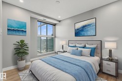 Experience elevated urban living in this stunning 31st-floor condo at the prestigious Encore Tower. Perfectly positioned in the vibrant downtown core, you're just steps from the Ice District, 104th Street, and some of Edmonton’s finest dining and entertainment. Step inside to be greeted by floor-to-ceiling windows offering breathtaking north to south panoramic views, capturing the beauty of west-facing sunsets and the glittering city skyline. The modern chef’s kitchen boasts sleek finishes, high-end appliances, and seamless flow into the open-concept living area—ideal for both relaxing and entertaining.This luxurious unit features 2 spacious bedrooms and 2 pristine bathrooms, all complemented by your own private balcony to take in the views. Residents of Encore Tower enjoy exclusive access to premium amenities including a fully equipped private gym, a stylish social lounge, and a beautifully situated 4th-floor outdoor terrace overlooking downtown Edmonton. Live in sophistication, style, and comfort!