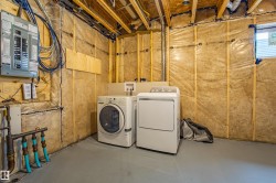 Welcome to Haddow Landing! This air-conditioned, bright south-facing 3-bedroom townhouse includes ***two titled parking stalls right in front of your door*** The two-storey layout is filled with natural light and features an unfinished basement ready for your customization. The main floor offers premium vinyl plank flooring, stainless steel appliances, ^black granite countertops^, and a half bath. Upstairs you’ll find 3 bedrooms and a full bath, with the primary boasting a large walk-in closet. The unit is quietly tucked into the interior of the complex, away from traffic noise. Out back, enjoy a private deck with natural gas BBQ hookup overlooking Haddow Community Park with the Ridge Community Center, playground, hockey rink, and sports fields just a short walk away. Fantastic location only one minute to Terwillegar Drive, close to The Currents at Windermere, and transit is right outside the complex. This home is ready for you!