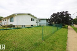 Great Curb Appeal! Spacious Corner Lot, Huge Garage & Plenty of Parking! Welcome to this 1,219 sq. ft. fully finished bungalow! This home has seen many updates including windows, siding, soffits, fascia, shingles, furnace, hot water tank, stainless steel appliances, and a refreshed kitchen with updated cabinets. Offering 4 bedrooms plus a flex room that could be a 5th, 2 bathrooms, and a separate entrance for future suite potential-ideal for families or investors. The finished basement has a large rec room with a charming wood-burning fireplace. Outside features an extended double garage with space for up to 6 vehicles. The fully fenced and landscaped yard is split into two areas—ideal for dogs or tenants. This home is steps from Jubilee Park with its spray park, skating rinks, playground, and picnic areas. Also, close to shopping, public transportation, restaurants, the North Sask River Valley trails, and roadways including Yellowhead Trail and Anthony Henday. Pet & Smoke free! Don’t miss this one!