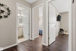 Located in the desirable nieghbourhood of Chappelle. This 1227 sq ft, 3 bedroom end unit townhouse faces a landscaped walkway. Walk through a court yard to the front door. Enter into an open concept on the main floor with a bright living room, spacious dining and kitchen with quartz countertops, lots of cabinets, and hardwood/ceramic tile flooring. The upstairs level has 3 spacious bedrooms, vinyl plank flooring and lots of natural light. The master has a walk-in closet. The 2nd and 3rd bedroom are a very comfortable size. There is a 4 pce bathroom on the 2nd level. Ample closet space. The basement has the laundry room, extra storage and has access to a double car garage. This townhouse is very well located within walking distance to schools, park/playground, shopping and public transit. The property is professionally managed and very well maintained. this home provides for a very pleasant living environment. Residents have and can enjoy access to amenities associated with the Chappelle Gardens HOA.