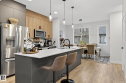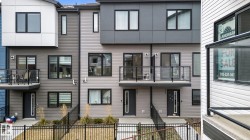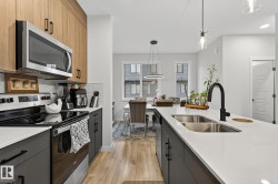 First time home buyers!! Welcome to Desrochers! This meticulously Maintained 3-storey townhome offers 3 bedrooms, 2.5 bathrooms, a double attached garage, and a fully fenced yard for privacy and peace of mind. Step inside to 9 ft ceilings that create a bright, open feel, complemented by quartz countertops, upgraded finishes, and stylish railings throughout. The modern kitchen flows effortlessly into the dining area with direct access to a spacious balcony—perfect for morning coffee, summer BBQs, or simply unwinding after a long day. Upstairs, the primary suite features a sunlit ensuite and a generous walk-in closet. You’ll also appreciate the second-floor laundry, a convenient linen closet, and the versatile flex room on the main level—ideal for a home office, workout space, or guest area. Enjoy truly maintenance-free living. Located just steps from Dr. Anne Anderson High School, the Community Centre, parks, trails, and everyday amenities, this home delivers comfort, convenience, and modern
