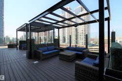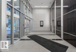 Come home to the 8th floor of the prestigious Ultima Tower! This contemporary 2-bed 2-bath corner suite offers sweeping views of downtown. Located in Ice District just steps away from Rogers Place. Open floor plan with loads of natural light from south and east facing floor to ceiling windows. 9’ ceilings, neutral paint palette and luxury vinyl plank blanket the floor. The spacious kitchen has been carefully crafted with granite countertops, stainless steel appliance package and dark maple cabinets. Work from home, tan on the south facing deck, this condo is fantastic! With 2 spacious bedrooms, including the primary bedroom that boasts a large walk-in closet and private ensuite bath. The building has an amazing lifestyle amenities package that includes gym, hot tub, huge patio, bbq area, indoor kitchen space and sitting area. All of this, plus titled underground heated parking, all located within walking distance to Rogers Place, MacEwan University, Jasper Avenue, and so many eateries!
