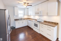 This charming property offers a nicely sized front entrance leading into an open living space filled with natural light. The updated kitchen features newer cabinetry, appliances, under-cabinet lighting, ample counter space, & a functional layout that opens seamlessly to the eating area & living room. Laminate flooring runs throughout the main level, which also includes 2 comfortable bedrooms & an updated 4pc bathroom. The entire home has been freshly painted, adding to its clean, move-in-ready appeal. The lower level offers its own private exterior entrance, 2 additional bedrooms, an updated kitchen open to a family room, & a 4pc bathroom - ideal for extended family or added flexibility. Exterior improvements include newer siding & attractive ornamental brickwork. The property offers ample parking at the rear, along with an oversized single-car garage. Located just one block from the LRT & close to amenities, this charming home is an excellent opportunity for first-time buyers or investors alike.