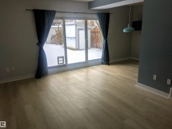 WOW! Fantastic END unit townhome that is move in ready; Perfect for first time home buyers, young couples or even those looking to downsize. Well run complex with reasonable condo fees in a great location close to new LRT, West Edmonton Mall and multiple schools. VERY RARE renovated unit that also comes with a large backyard. New vinyl plank throughout the main floor, fresh paint, trim and light fixtures. Updated kitchen including new countertops, double sink, tiled backsplash, stainless steel appliances and an oversized pantry. Upstairs features renovated bathroom with new tub, tile, vanity and floor. There are also 2 large bedrooms with double closets, including one room with custom closet cabinet and shelving. Basement is mostly finished with L-shaped living room and oversized storage room adding to the total square footage. Beautiful well maintained east facing backyard perfect for entertaining or relaxing in the sun. BONUS air conditioning as well. This is a must see as it wont last long!