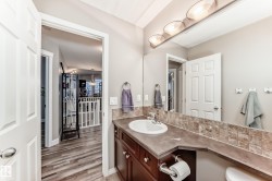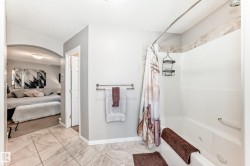 MASSIVE HEATED/INSULATED TANDEM GARAGE, CORNER LOT & FIVE BEDROOMS! Step into style and comfort in this beautifully updated home! The open kitchen flows into a cozy living room with hardwood floors and a tile-surround gas fireplace. Enjoy dark cabinetry, granite countertops, a corner pantry, & sliding doors that lead to a COMPOSITE DECK, MAINTENANCE-FREE FENCING, & a charming gazebo with a relaxing jetted hot tub--perfect for entertaining or unwinding! Fresh upgrades include NEW vinyl plank, paint, HWT, AC,refrigerator, stove, and washer. Upstairs offers three bedrooms, including a stunning primary suite with a 5-piece ensuite, separate water closet, and walk-in closet. UPSTAIRS LAUNDRY & a sizable bonus room complete this level. The fully finished basement adds two spacious bedrooms (one with a walk-in closet), a 4-piece bath, and great storage. Close to parks, schools, walking paths & more. A true move-in-ready gem!