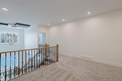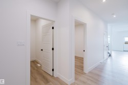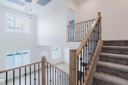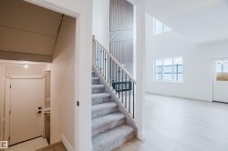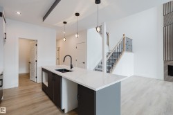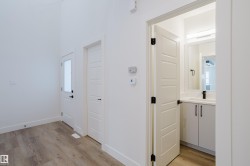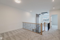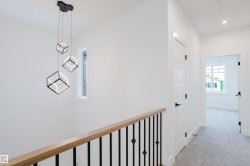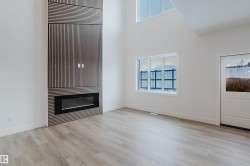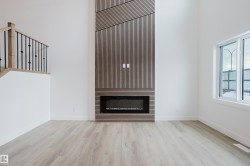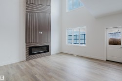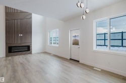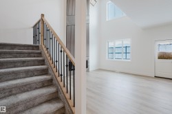 Welcome to this exceptional home in the desirable Meadowview community of Leduc. The main floor offers two open-to-above areas, one in the foyer and one in the living room, creating a bright and airy feel. A front walk-in closet with bench and hooks provides practical storage for families. Also on the main floor are a den, a full bathroom with standing shower, a walkthrough spice kitchen, a modern kitchen with sleek finishes, and a living room highlighted by a feature wall with electric fireplace. Upstairs are three well-sized bedrooms, including a primary suite with a five-piece ensuite and a stylish accent wall. A versatile bonus room overlooks both the front and back of the home, enhancing the open layout. The basement includes a separate side entrance, offering excellent potential for future development.