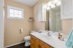 Welcome to your lovely, 3 bdrm, 2 story house is situated on a desirable corner lot, directly across from a serene park. This home is ideal for families with children, as you are close to 2 schools, and busing is provided from these schools to both Elementary and High School. You will find a perfect blend of comfort, style and natural beauty, that creates a unique opportunity to embrace a tranquil yet convenient lifestyle. You will love the open plan which is perfect for large family and friend gatherings. Upper floor boasts 3 large bedrooms with walk in closets and 2 bathrooms. Enjoy a quiet moment on the wrap around front veranda, or have a BBQ on the rear deck, complete with mobility lift so everyone can join in the fun. This home also features an oversized rear, detached garage, big enough to hold vehicles, toys and still have a workshop. Recent upgrades during the past few years include replacement of all polyB to pex (2023) exterior siding (2017), hot water tank (2019), shingles (2013), renovated primary ensuite, closet system (2017), flooring on main (2020), furnace (2022), living room fireplace converted from gas to electric (2025) some new appliances, some new window glass, all blinds and window screens are new or added, as well as many other items. This amazing home has been very well maintained, and is move in ready. Do not delay, view today!!!