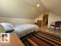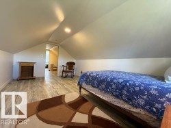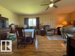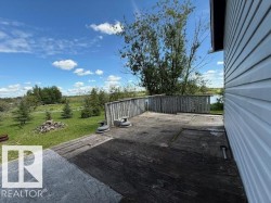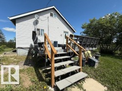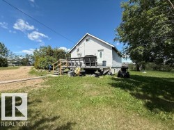 Welcome to this cozy acreage that's just 8 minutes from Lloydminster. This 0.89 acre property offers a pond view, trees, paved range road & lots of opportunity to make it your own. There's a newer septic system a/ mound, well water, a large U turn gravel driveway, & close proximity to Kitscoty (6 min). This bungalow on the main floor offers: 1 bedroom, 1 full bath which functions also as a semi ensuite, the kitchen, a large entry, a spacious dining area as well as the living room. There is access to the back of the home via patio sliding doors. (The deck will need to be removed, and isn't safe to walk on, do not walk on please). Up in the Loft area, there is a landing for storage, and two areas that have a window each; This allows for a great cross breeze. The undeveloped basement has large above ground windows & can be developed into a 2 bedroom plus 1 bathroom, & laundry. (*Please note in the past the home has been smoked; has not been smoked in the past few months.) (Handyman special)(Lot 129' x 298')