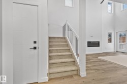 The Baci model welcomes you in with a spacious foyer and mudroom, leading into an open-concept kitchen, nook, and living room with soaring ceilings and a striking open-to-above design. A built-in pantry and central island enhance the kitchens functionality, perfect for everyday living and entertaining. Upstairs features two secondary bedrooms, a laundry closet with sink, and a serene primary suite with double sinks, tiled shower, and a walk-in closet. The home also includes a legal basement suite with one bedroom, a living room, 3 piece bathroom, and full kitchen.