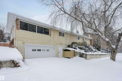 Discover this stunning hillside bungalow in the desirable community of The Gardens, previously Grandin, offering over 3000 square feet of spacious living. Nestled on a sought-after street, this home features an above-grade basement that provides plenty of natural light and versatile space. The property boasts an oversized heated double garage equipped with a chain hoist and compressor, perfect for enthusiasts and hobbyists. An additional single garage and ample driveway parking add to the convenience. Inside, you'll find 4 bedrooms upstairs, along with a 5th bedroom on the main entry level. Two inviting living rooms, each with its own fireplace, create cozy atmospheres for relaxing and entertaining. The updated kitchen includes a spacious walk-in pantry. The large bonus/rec room has a moveable bar and offers additional space for entertaining or family fun, while the attached 3-season sunroom provides a perfect retreat to enjoy the views year-round. This home has functionality & charm in a prime location!