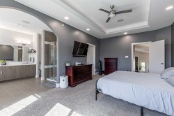 Welcome to 5401 43 Street in Taber — an exceptional family home situated on a quiet corner lot, thoughtfully designed with comfort, function, and modern elegance in mind. The exterior impresses with striking curb appeal, featuring Hardie board siding with smart trim accents, exposed aggregate concrete, PVC windows, and maintenance-free handrails. The fully fenced and professionally landscaped yard includes a stamped concrete patio that also doubles as R.V. parking, a covered lower patio ideal for a future hot tub, and a spacious back deck — the perfect place to enjoy peaceful, east-facing sunrises. A charming front porch invites you to start your mornings with a coffee in hand.Inside, the main level is bright and open, enhanced by vaulted ceilings and an airy, functional layout. The kitchen is beautifully appointed with quartz countertops, a large island with an undermount sink, updated appliances, a pantry, garburator, and tile backsplash. The adjacent dining and living spaces are warm and inviting, centered around a gas fireplace and built-in desk area, and complemented by a full-home speaker system—ideal for everyday living and entertaining. Privately situated above the garage, the spacious primary suite offers a quiet retreat. It features a tray ceiling with ambient mood lighting, access to a private balcony, an expansive walk-in closet, and a luxurious 6-piece ensuite with an extra-long soaker tub, dual vanities, and generous built-in storage. Two additional well-sized bedrooms and a stylish 4-piece bathroom complete the main floor. The fully finished basement offers 9’ ceilings, a large family room with a second gas fireplace, two more generously sized bedrooms—each with walk-in closets—a 4-piece bathroom, and a wet bar. Comfort and practicality continue with in-floor heating, air conditioning, and rough-ins for central vacuum. Additional highlights include a heated double attached garage, underground sprinklers, exposed aggregate front steps, an outdoor speaker system, and durable asphalt shingles. Perfectly located just minutes from schools, parks, and all amenities Taber has to offer, this beautifully maintained home is an ideal choice for families seeking space, style, and functionality