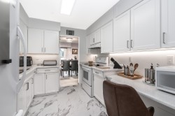 Welcome to Dogwood Manor! This southeast corner 1,300+ sqft unit features three large bedrooms, two full bathrooms, fully renovated not a thing to do! Gorgeous fireplace and a huge private wraparound patio with glass railing. The well run 55+ building has been fully refurbished with new siding and updated common area carpeting. The unit offers marble tile floors, under-cabinet lighting, ample storage, and plenty of parking. Enjoy great amenities, including a fully equipped gym and games room, all in a central location close to shopping and highway access.