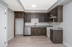 This brand new home located in a quiet established neighbourhood close to a park and schools. 9 ft ceilings throughout all 3 levels and 4 bedrooms. Open floor plan on the main, includes large kitchen w/island and seating area, all main floor kitchen appliances, hard surface counter tops thru out main, dining area and living room complete with floor to ceiling stone gas fireplace. Home has front sun deck with glass railing and a covered rear patio, rough ins for BBQ and AC. Upper floor has 3 large bedrooms with a 3 piece bath for the kids. Master bedroom is complete with walk in closet and ensuite includes two sink and amazing large tile shower. Basement contains 1 bdrm suite complete with laundry. Fully fenced and landscaped.