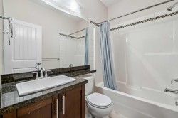 Spacious Duplex-Style Townhome in Ledgeview Villas! Quietly tucked away, this beautifully maintained home features open-concept main level with hardwood flrs, 9’ ceilings, crown molding, gas FP & convenient powder rm. Kitchen offers granite counters, quality cabinets & newer stainless-steel appliances. Upstairs offers 3 bdrms, laundry, 4-pc bath, primary suite with WI closet & 5-pc ensuite. Fully finished basement with bdrm, 4-pc bath, wet bar, large fam rm, extra storage & separate entrance. Updates incl carpet, paint, HE furnace w/smart thermostat, Rheem Marathon HW tank, EV charging outlet & front patio awning. Private, fenced yard backs onto lush green space. Fantastic East Abby location near great schools, golf, trails & quick freeway access. Pet friendly(2 pets, no size restrictions)