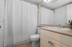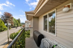 Welcome to this 2 bedroom, 2 bathroom top floor corner unit. Originally the show suite, this bright and spacious home features vaulted ceilings, an open floor plan, and large windows showcasing beautiful north-facing mountain views. The living room offers a cozy gas fireplace, and each bedroom has its own bathroom for added privacy. Enjoy a generous deck off the dining area, in-suite laundry, and ample storage. Centrally located close to shopping, the revitalized Abbotsford core, amenities, and public transportation. Book your showing today!!