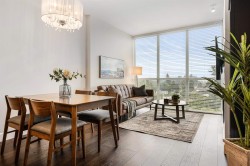 East-facing condo in Mahogany at Mill Lake! Enjoy breathtaking views of Mt. Baker and Mill Lake through floor-to-ceiling windows that flood the home with natural light. This 2-bedroom, 2-bath residence features geothermal heating and cooling, engineered hardwood flooring, heated tile bathroom floors, high-end fixtures, a gas fireplace, and a spa-inspired ensuite with a rain shower. Mahogany offers resort-style amenities including an indoor pool, hot tub, fitness centre, bistro, workshop, outdoor BBQ area, car wash, and 2 guest suites. Just steps to shopping, dining, and Abbotsford Regional Hospital, this home combines luxury living with unbeatable convenience.