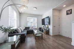 Modern 3 bed corner-unit townhouse built in 2023 and still under warranty! Bathed in natural light, the bright open-concept main floor features a stunning quartz-island kitchen, elegant modern light fixtures, and a spacious balcony perfect for summer BBQs. Quartz counters grace every bathroom, and the primary suite offers a luxurious walk-in closet with private ensuite. All bedrooms are generously sized and beautifully bright—perfect for a family-friendly lifestyle. Double garage plus an oversized parking pad provide ample space. Enjoy the large fenced backyard with a covered patio—ideal for entertaining or relaxing. Pets welcome. Just steps from vibrant historic Downtown Abbotsford’s charming restaurants, shops and cafes!