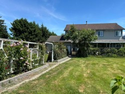 Sat on 5 acres of land, this captivating home offers your own private orchid filled with cherries, walnuts, plums, peaches, figs, apricots, pears, apples, wine grapes, blueberries, and raspberries. The property includes a workshop, barn, greenhouse, pond, and chicken coop, making it perfect for sustainable farming and gardening. An acre of pine forest lies in the back for added privacy and serenity while being fully fenced and situated a safe distance from historical floods. The interior features recently replaced flooring, paint, and a new hot water tank. Located just a 15-minute drive from downtown Abbotsford, Chilliwack, Cultus lake, and the Vedder river, this property offers a unique lifestyle of modern comforts, exceptional salmon fishing, sustainable living, and peaceful leisure.