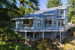 Panoramic ocean views, a 3600+ sf home with 5 bedrooms, and a large property with almost ¼ acre of flat lawn make this a rare combination. Along the tree-lined driveway is a spacious park-like area with room for family reunions, kid’s birthday parties, and gatherings around the firepit with friends. The 2400sf wrap around deck, with a new hot tub. provides awe-inspiring views of the ocean and mountains. With a desirable floor plan that features bedrooms and full bathrooms on every floor, this is a great home for large families and for those who need separate work-from-home spaces. The lower floor opens to a mature, landscaped garden that is fenced to keep the deer out and the dogs in. It's just a 5-minute drive to Snug Cove, and the school bus picks up and drops off at the driveway.