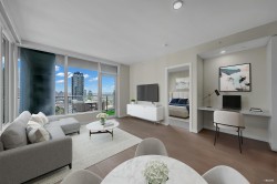 Welcome to Gilmore Place Tower 1, a masterfully designed residence that sets a new calibre for modern luxury living. The open-concept layout flows seamlessly from the living and dining areas. Design your dream gourmet kitchen which comes w/double fridge & complete w/high-end finishings & appliances. Master ensuite bathroom features a double sink & other luxurious spa-like finishes. This expansive 2-bedroom+den,2-bathroom unit offers more than just a living space- this is an opportunity to experience a lifestyle redefined with unrivalled, world-class amenities that elevate daily living to a resort-like experience. Residents will enjoy exclusive access to 75,000sf of one of a kind resort-style amenities. Schedule your private tour today to get a fully immersive experience of prestige living!
