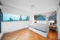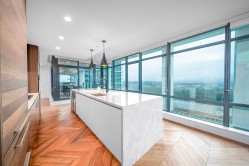 ALERT! $175,000 below the BC Assessment value.!! MILANO by Solterra – experience refined sub-penthouse living in this 1,371 sqft 2 bed + 2 bath Private Collection home with panoramic city & mountain views. This elegant end unit residence features chevron-patterned hardwood, floor-to-ceiling windows, and integrated A/C. The gourmet Italian kitchen impresses with quartz countertops, premium appliances, and a sleek island positioned to take in the city skyline. Both bedrooms easily fit king-sized beds and offer spa-inspired bathrooms with heated floors. Includes 3 parking stalls and a locker. An exceptional home steps from Brentwood's best shopping, dining, and transit.