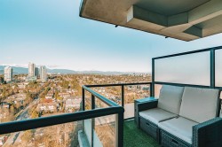 Jaw Dropping North Facing MOUNTAIN VIEW w/ 9ft ceilings & picturesque floor to ceiling windows! A sizeable 1 bed condo that makes you feel like you're on top of the world! And you're next door to Edmonds Skytrain making it a great purchase to move into or rent out as an income property. Other Features: a gourmet kitchen, gas stove, stainless steel appliances, granite countertops, refinished cabinets & laminate flooring. Enjoy the view inside with a cozy gas fireplace. Or outside on your private & spacious 100sqft patio. Well run & proactive strata w/ caretaker & excellent amenities. Immediate skytrain access to get around the city, or keep it close surrounded by parks, shops, recreation, restaurants, schools & more a short walk away! 1 Parking/Storage. 2 Pets/Rentals allowed.