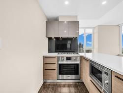 Gold House North Tower by Rize Alliance located in the heart of Metrotown in Burnaby. This high level 2 beds 2 full baths unit faces Southwest with spectacular mountain and city views. Large wrap around balcony for year round entertainment. Functional layout with 9' ceilings throughout. High-end modern kitchen equipped with Armony soft-close cabinetry and integrated Bosch appliances. Central A/C. Over 30,000 SF of Amenities including a Fitness Centre, Party & Study Room, Social Lounges, BBQ area and 24 hour Concierge. Pets & Rental allowed. Located just steps away from Skytrain Station, Station Square, Metrotown Mall, Crystal Mall and Bus loop, restaurants, banks, Bonsor Community Centre & much more.
