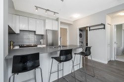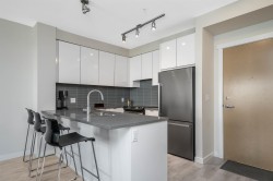 Welcome to Polygon’s Veritas in the heart of SFU’s UniverCity. This bright 2-bed, 1-bath home offers 767 sq.ft. of efficient living with 9' ceilings and a smart, open layout. The gourmet kitchen features quartz countertops and stainless steel appliances, opening to a comfortable living and dining area. The primary bedroom enjoys direct access to a covered balcony, your quiet spot for morning coffee. A spacious 5-piece bathroom (separate tub and shower, double vanity) serves both bedrooms. Full-size front-load laundry, radiant in-floor heating and hot water included in the maintenance fee. Secure parking, plus access to the building’s gym and amenity room. Move-in ready and steps to campus, transit, shops, cafes, and endless trails. Easy to Show!