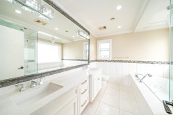 Rarely available luxurious south-facing corner-lot with panoramic view of the Fraser River, situated in the desirable South Slope area. Centrally located, close to Metrotown, Crystal mall, restaurants etc. Beautiful and clean street in quiet neighbourhood with cherry blossom tree line, perfect balance between convenience and privacy. Custom-built with top of the line materials and appliances such as Subzero fridge and Wolf range, Kohler toilets, faucets, and showers, steam room, jacuzzi tub and body jets, home theatre etc. Main floor conveniently designed with in-law suite. Property equipped with central vacuum system, HRV, radiant heating and AC unit. Spacious garage can easily accommodate two cars, upgraded to EV charging. Don't miss out!
