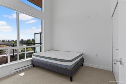 Step into PENTHOUSE living where stunning design meets everyday convenience. This exclusive TOP FLOOR penthouse boasts soaring 14-foot ceilings, streaming natural light, and breathtaking mountain views from sunrise to sunset. With 780 sq. ft. of thoughtfully crafted space, this 2-bedroom retreat offers an airy, open layout perfect for both relaxing and entertaining. A generous private outdoor area extends your living space even further—ideal for morning coffee, evening wine, or hosting friends. For those who crave urban excitement, New Westminster is just 5 minutes away. Families will appreciate the close proximity to elementary and high schools.