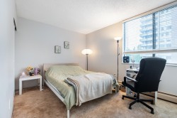 LOCATION! LOCATION! Across the street from Lougheed Mall and SkyTrain, this beautifully maintained and updated 1 bed, 1 bath corner unit at The Oaks offers 673 sq ft of bright living space. Enjoy large windows and sliders to a wraparound balcony with Burnaby Mountain views. Updates include new vinyl flooring, a modern kitchen with sleek cabinetry, countertops, and stainless steel appliances, plus a renovated bathroom with floating vanity. The spacious primary bedroom features two closets. Fantastic amenities include indoor pool, hot tub, sauna, gym, workshop, social lounge with billiards, darts, table tennis, library & more! Includes 1 underground parking stall & storage locker, with extra parking and EV charging available. Heat and hydro included in strata fees! OPEN SUN DEC 14 1130-1230