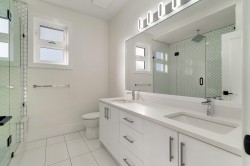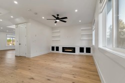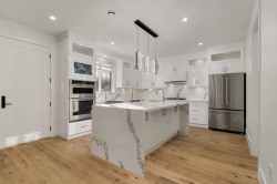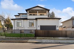 Corner Lot-Central Location- One block to Elementary School - 2 blocks to transit - walk to Robert Burnaby Park Open Entry with High Ceiling - Main Floor has guest room with en-suite + Another 2-piece washroom- hot water radiant heat- air condition -HRV- Security alarm system with monitor - main floor has lvg rm, kitchen, family rm, spice kitchen + laundry rm- Top floor has bedrooms with en-suites - main + top floors with engineered hardwood floors - top quality appliances - top quality throughout- experienced builder 2-5-10 year warranty - fully fenced - All Measurements are approx. taken from the plan - Must verify if deemed necessary- Phone to view.