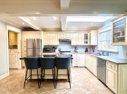 Lovely well kept 3 level split started home sits on 44x110 lot with 3 bdrms/rec rm/3 baths in nice Edmonds area. Features: custom cabinets in kitchen with S/S appliances. Laminated/tile flooring, hot water tank (1 yr). Furnace (6 yrs), roof (11 yrs). Great layout with gas fireplace in living rm. Spacious kitchen has skylight above the island for natural light. Dining area with French door opens to fenced rear yard with nice garden and fruit tree. Good size deck perfect for outdoor entertainment year round. Power gate at back allows extra secured parking spot beside the garage. Potential suite for in-laws and guests or for future redevelopment. Central location with easy access to transit and all amenities