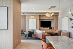 Every day is a 5-Diamond Resort Vacation at the 2 level - 75,000 SqFt of luxury amenities: In & Outdoor oversized pools, Hottubs, bowling lanes, Golf Simulator, music rooms, 5 guest suites, sport court, State of the Art Exercise Centre, Clubhouse, theatre, Steam/Sauna, Workshop, Kids park, Party Room, Dog Park & more. Health, Wellness & Relaxation comes with this designer crafted 900 Sqft SE corner 2 BED/2 BATH condo in the coveted Brentwood District. Steps to World Class shopping, eating & services at Gilmore Place Shops, T&T & Brentwood Centre. Sophisticated design: 9' ceilings, A/C, Dreamy kitchen w/ DOUBLE stand-alone fridge/freezers bottom, stone counters, marble backsplash, pantry, spa bathrms,office nook, wide plank laminate flrs, 129 sf balcony, flex (great Office), 1 PRKG, 2 LCKRS
