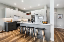 Welcome to Waters Edge! Experience unobstructed Fraser River views from all three levels of this stunning 4-bedroom, 4-bathroom townhome. The open-concept main floor showcases a sleek kitchen with quartz countertops, stainless steel appliances, a large island & a spacious dining area —perfect for entertaining. The inviting living room features a cozy fireplace & opens onto a patio where you can soak in the breathtaking views! Upstairs you will find 3 bedrooms including the primary suite with its own private patio, a spa-inspired ensuite with a soaker tub & dual sinks, and a generous walk-in closet. Downstairs, the fully finished walk-out basement provides even more living space with a 4th bedroom, full bathroom, and versatile rec room. Additional highlights include a double garage and A/C!
