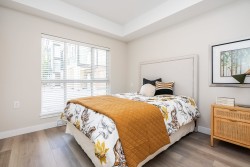NO GST or PTT for qualifying 1st time buyers ! Chilliwack's best value condos with 113 suites and 19 floor plans. No age restriction and pet friendly. Features include, Air Cond, Quartz Counters, 6 quality Appliances, King Size Bedrooms, Wide plank scratch resistant flooring, LED lighting, Window Blinds, Screens, 9' Ceilings, Glass Solarium Deck Enclosure, plus this one has a huge extended patio as limited common property for just this suite. Low strata fees, Fitness room, Pool Table, Ping Pong Table, Car wash and Vac, Extra Parking, Storage, EV Car Charge Available & Much More! Open House 12:00-4:00 weekends or by private appt.