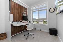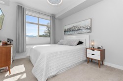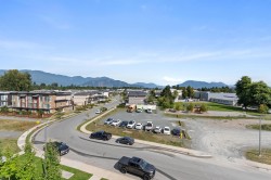 TOP FLOOR, CORNER UNIT, W/ AIR CONDITIONING! This incredible unit is one of a kind in all of Chilliwack! With an abundance of windows, and north and east exposure, it offers spectacular mountain views not just out of every window, but off the spacious corner deck. Inside, this 2bdrm 2 bth unit has been spotlessly maintained and shows pride of ownership. Ductless unit keeps the space cool in the summer, and warm in the winter, saving on electrical heat. Being top floor you get to enjoy the peace of having no one above, and only 1 neighboring unit beside you.This fabulous building offers a private earthy sitting space to embrace, walk around paths with benches on the elevated 1st floor, and a roof top deck best enjoyed with company! Rare 2 spot OWNED parking stalls in the secure UG parking.
